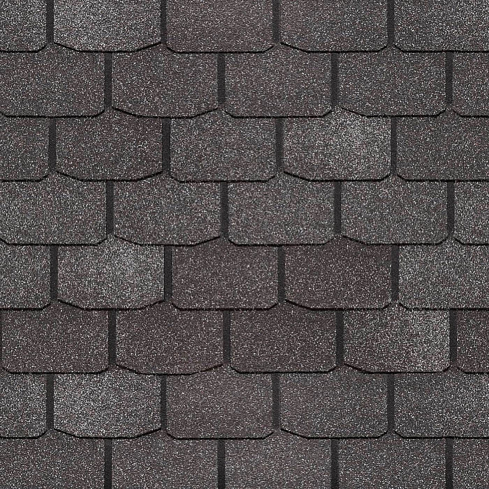 Глубокий графитовый цвет с мягкими переходами оттенков эффектно смотрится на кровлях большой площади сложной конфигурации. Дизайн гонтов не отвлекает внимание от деталей крыши. Черепица гармонично смотрится со светлыми теплыми оттенками и более насыщенными холодными тонами.